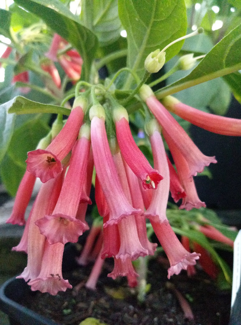 Deep green leaved Iochroma that produces large clusters of bright coloured flowers from mid spring to mid autumn. Iochroma can be used for colourful hedging or screening. Also makes an excellent back of the border subject in garden beds. Iochroma coccinea hails from South America so likes warmth, a bit of water during hot weather, and fertilising during the growing season. Happily grows in full sun to some afternoon shade. 3mH x 3mW