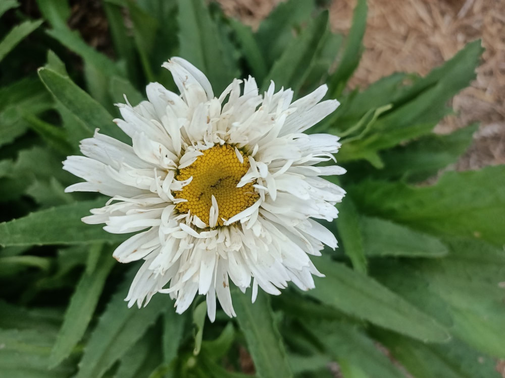 The true shaggy shasta daisy, so hard to find anymore. Grows robustly to 0.35mH & W with some supplementary water over summer. Makes a nice cut flower and a lovely complement to rose gardens. Full sun to part shade.