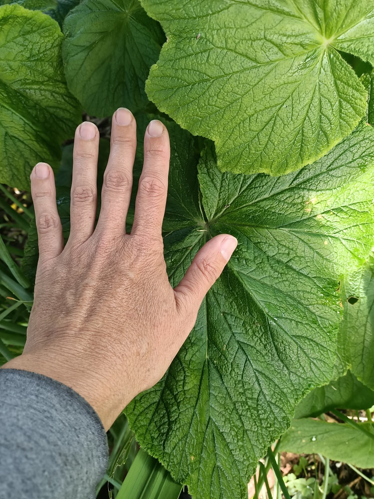 Stunning ENORMOUS shrub pelargonium from South Africa. This pellie has large heart or butterfly wing shaped leaves (see pic with one of my hands for size comparison). It will grow up to 2m tall unpruned although I trim it to keep it under an old orange tree. The pink flowers are produced in large clusters from early spring into autumn. This pelargonium does need shade, either afternoon shade or dappled shade beneath trees. It will tolerate dry soils but is best with a bit of water. It's natural habitat is the edge of forests near streams.