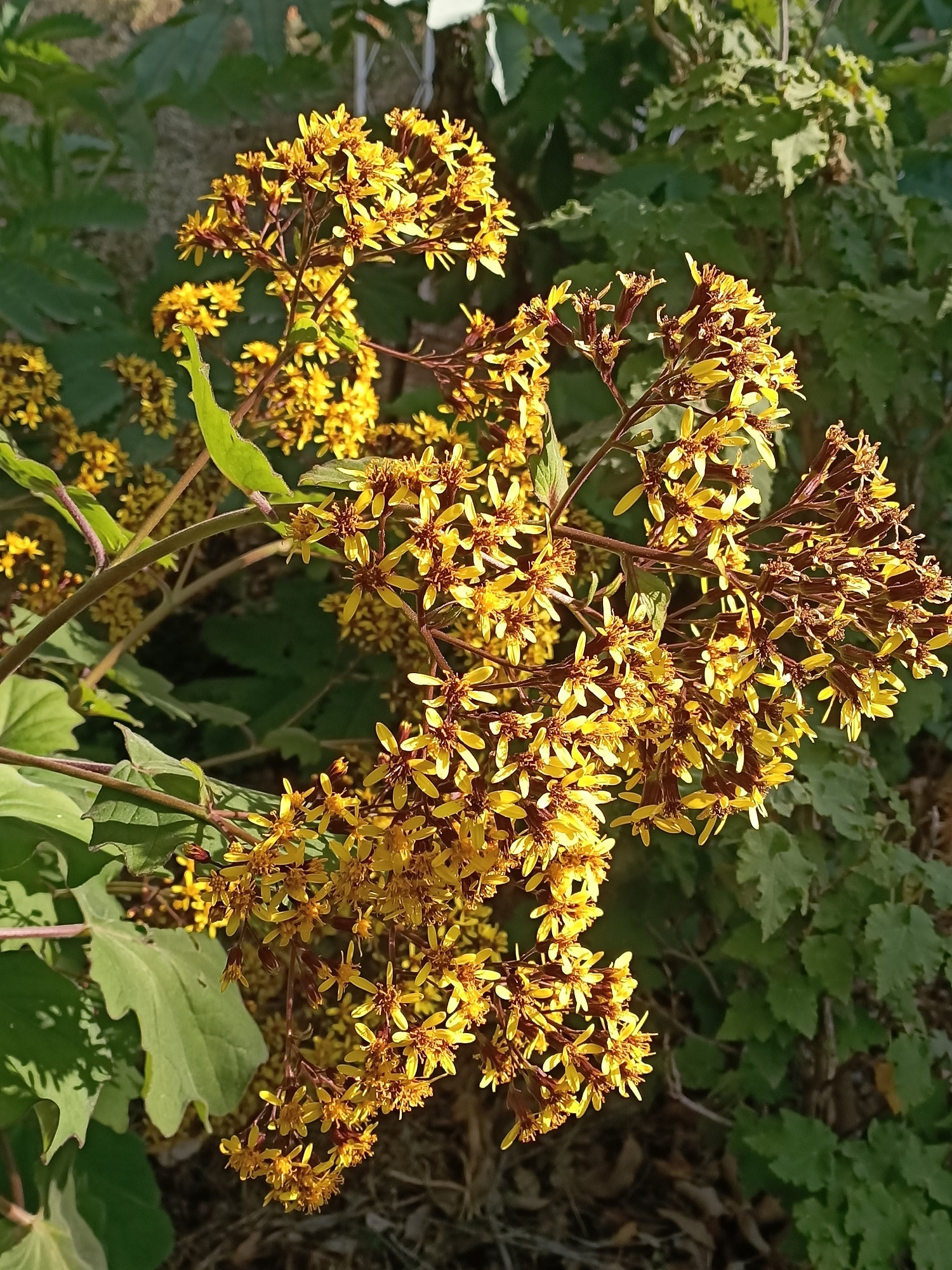 From subtropical eastern Mexico, Roldana petasitis is a very forgiving plant. It forgives dry conditions, low humidity and even brutal pruning, just steadily producing its velvety jewel green foliage to make a handsome shrub beneath trees or on the south side of buildings. In winter golden aster like flowers are produced enmass making it glow when the sun hits upon the inflorescence. Prune back hard after flowering to encourage new basal growth and keep compact. Will take sun in cooler months but best with dappled shade once the hot weather hits. 2mH x 2mW (unpruned)