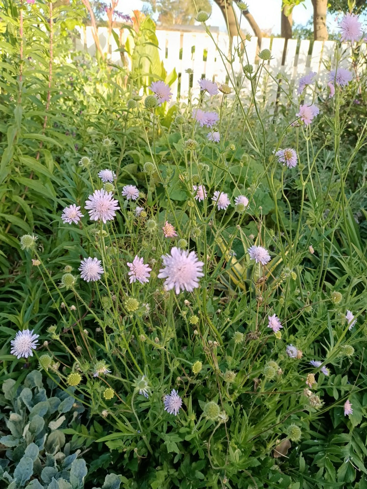 Terrific perennial similar to Scabiosa but with longer stemmed flowers offering a light airiness that is a perfect accompaniment to grasses or Euphorbia. Flowers from early spring right through to mid autumn if it gets the occasional splash of water during the heat of summer. Develops a mound of basal foliage 0.25mH x 0.30mW with flower stems reaching up to 0.5mH. Grows happily in full sun to part shade. Will gently self seed if not deadheaded but easy to remove or mulch over to control progeny.